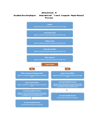 1. The President, Executive Vice President, Chancellor, Provost, Senior Vice Presidents, Deans or their designees, will approve travel for official University business in advance. Approved Requests (Domestic / International) along with Request for Approval for Attendance at Events form will be submitted to the following departments: Ethics officer as per N.J.A.C. 19:61-6.1(c), Office of Sponsored Programs if grant related and Accounts Payable to ensure compliance with University policies.